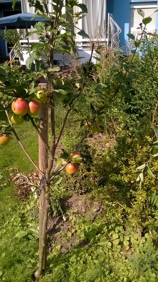 Der kleine Apfelbaum trägt im zweiten Jahr bereits 8 Äpfel.